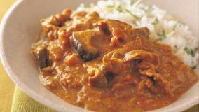 白いご飯がよく似合う、家庭的なカレーです。おいしさのポイントは、たっぷりのたまねぎと甘酸っぱい梅酒を加えること!