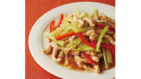 バラやロースより脂身が少ない豚もも肉で低カロリーに。かみごたえのあるセロリで、満腹感が高まります。