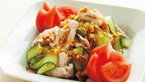 豚しゃぶマリネを使うと味がついているので、ソースはなすときゅうりにからめて。