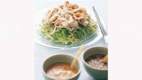 夏の定番おかず・冷しゃぶを、青とうがらしの辛みがきいた柚子こしょうだれでいただきます。