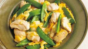 下ゆでしてからサッと炒めるので、絹さやはシャキッ、ささ身は柔らか。卵のまろやかさが全体を一つにまとめます。