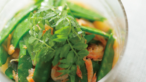 やさしい甘みの絹さやが、テーブルに春を届けます。アスパラガスやいんげんでつくってもおいしくいただけます。