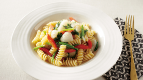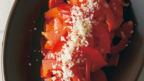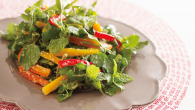 「パプリカの昆布じめ」を使った一品。昆布じめのうまみにかんきつをプラスして、さっぱりとしたサラダに。