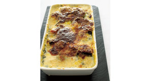 ミルク煮の煮汁をしっかり含んだ里芋に、チーズのうまみと焼いた香ばしさが加わり、ごちそうグラタンに。
