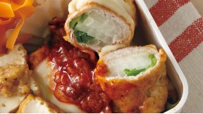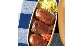 肉巻きおかずは断面が華やかで詰めやすく、お弁当向き。たっぷりの野菜を巻けば彩りも栄養のバランスもよくなります。ご飯によく合う洋食風の味つけがポイントです。