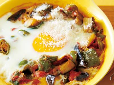 トマトやパプリカ、なすやズッキーニなど、様々な野菜を煮込むフランスの家庭料理。イタリアでは「かポナータ」といいます。シンプルな味付けで野菜のうまみを楽しみましょう。