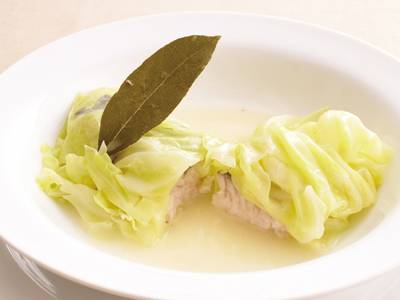 柔らかな春キャベツなら、生のままで包めます。煮汁にとろみをつけたらおいしいソースが完成です!