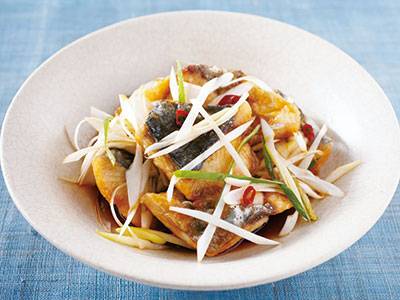 小田 真規子 350kcal 15分 白身魚、ねぎ、酢、みりん、しょうゆ、他