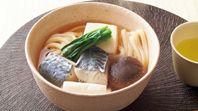 凍ったうどんとさわらを同時に入れてひと煮立ちさせれば、さわらから出るうまみがだしになり、上品なうどんつゆに変身します。