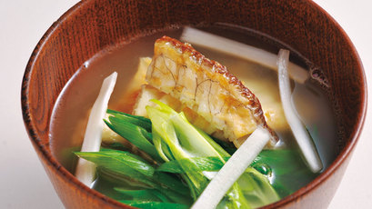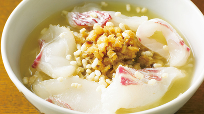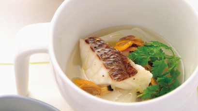 魚のアラから出るだしをベースにした和風のスープです。滋味深いぜいたくな味わいはまさに「ごちそう」です。