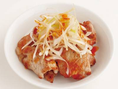 特製のうま辛だれが、肉にのせたねぎとしょうがにからんで食欲をそそります。お弁当にもぴったりですよ。