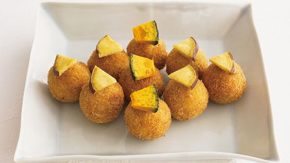 かぼちゃとさつまいもを両方使い、かわいらしくて食べやすいコロッケをつくりました。コンデンスミルクとチーズがポイント。