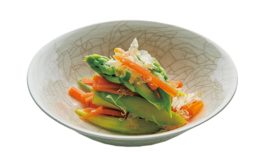飛田 和緒 25kcal 10分 グリーンアスパラガス、春にんじん、削り節、しょうゆ