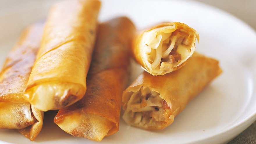 春巻の具をトロリと溶けたチーズがまとめます。みその風味で十分においしいので、つけだれいらずの一品です。