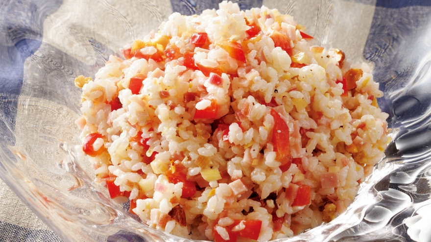 藤野 賢治 370kcal 30分 米、洋風みょうがの甘酢漬け、パプリカ、ハム、ミックスナッツ、他