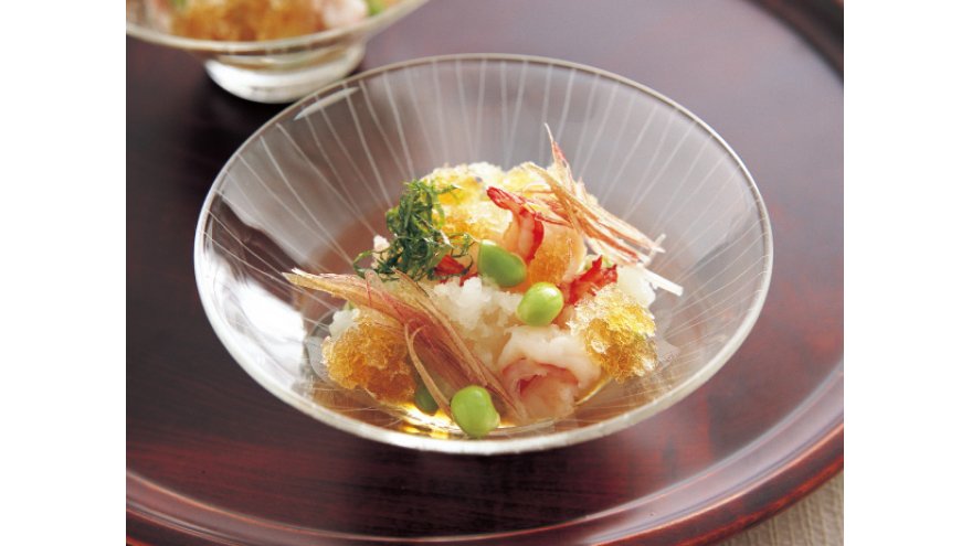 だしにしょうゆ、酢などを加えて凍らせた「氷酢」は、シャリシャリの食感と口溶けが斬新。