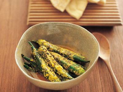 山内 けい子 25kcal 10分 オクラ、アンチョビ、卵黄、塩