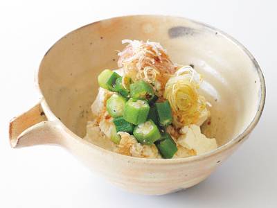 削り節としょうゆの香ばしさが、厚揚げのほのかな甘みとオクラにマッチして、あとを引くおいしさです。