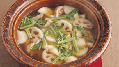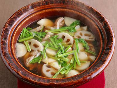 さっぱりとしたしょうゆ味で、具の持ち味を生かします。れんこんとかぶの食感の違いも楽しい一品。