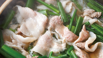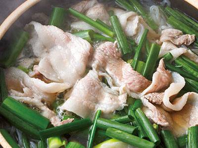 豚バラ、しらたき、わけぎの鍋