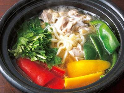 ベースにトマトジュースを使った新鮮な味わいの鍋です。鶏肉鍋のバリエーションが広がります。