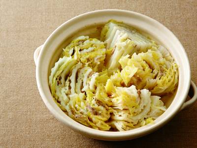 大庭 英子 360kcal 50分 白菜、豚バラ肉、酒、ポン酢しょうゆ、白ごま、他