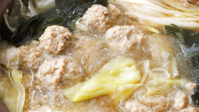 だしベースの汁で肉だんごを煮るので、濃厚なうまみが楽しめます。春雨は戻さずに直接入れるのがポイント。おいしい煮汁を吸って柔らかくなります。