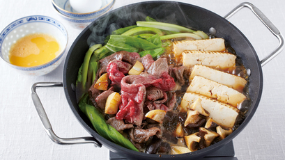家族みんなの「甘い」や「塩辛い」の声にこたえながら、卓上で味をつくっていきましょう。ここで紹介するのは、関西の「家庭のすき焼き」です。