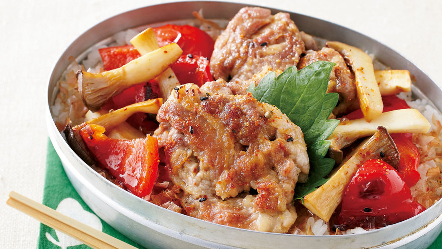 豚肉と野菜の焼き漬けのっけ弁当