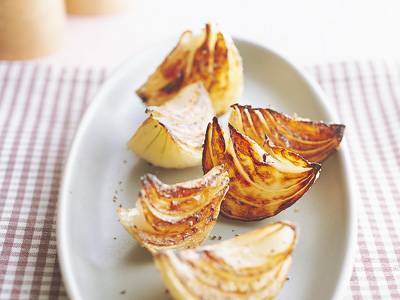 新たまねぎをこんがりと焼いて、甘みをアップ。肉や魚料理の付け合わせにもぴったりですよ。