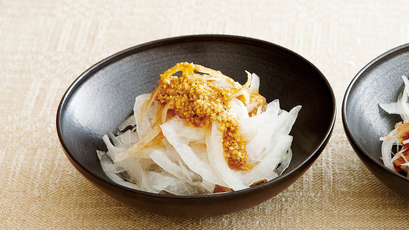 大庭 英子 50kcal 5分 新たまねぎ、削り節、しょうゆ