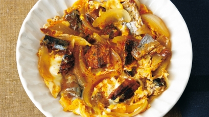 河野 雅子 210kcal 10分 さんまのかば焼き、たまねぎ、卵、みりん、しょうゆ、他
