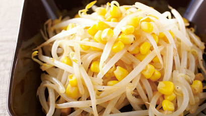 サッと蒸しゆでにしたもやしは甘みが出て歯応えもシャキ! コーンの甘みとバターのコクでおいしさがアップします。