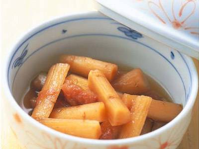甘みを加えずに、ごぼうの滋味を引き出します。梅の酸味がアクセントのおつな一品。