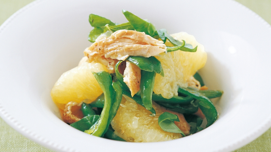エクストラバージンオリーブ油のフルーティーな香りと、グレープフルーツの酸味がさわやかで鮮やかなサラダです。