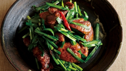 パンチのあるにらの風味は、レバーの味わいとベストマッチです。レバーの表面はこんがり、中は柔らかジューシーに仕上げます。