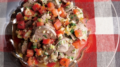 香味野菜と一緒にゆでたレバーはさっぱり。くせや水分が抜けて、レバーのうまみが詰まっています。ワインにピッタリの一品です。