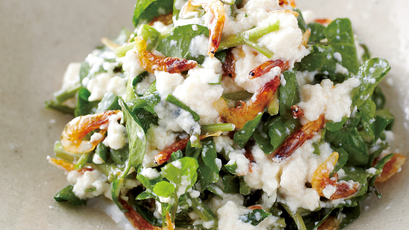桜えびを香ばしく炒め、熱いうちに豆腐に加えます。クレソンのほのかな苦みと桜えびの香りが魅力的な一品です。