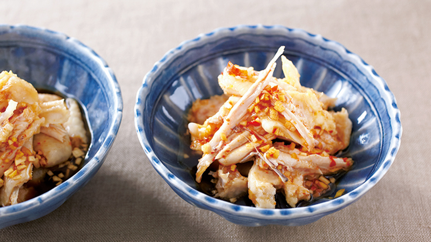 豆板醤の辛み、しょうがとにんにくの風味が、手羽先によくからんで、あとを引くおいしさです。