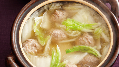 クタッと柔らかく煮えた白菜が堂々の主役。うまみの詰まっただしは、締めにうどんやお餅を入れても楽しめます。