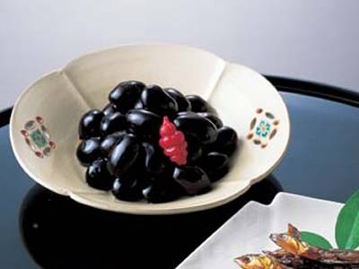 味よし、姿よしの極意は、柔らかく煮た豆を薄い砂糖みつに浸すことです。漆黒の宝石のような黒豆を召し上がれ。