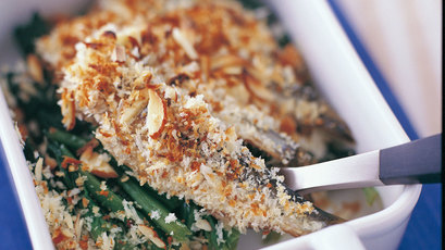 本多 京子 196kcal 20分 オイルサーディン、ほうれんそう、アーモンド、パン粉、粉チーズ、他