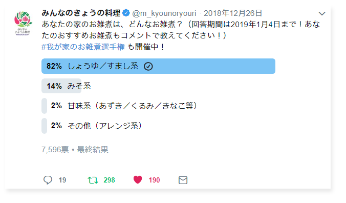 こちらの「総数7596票!「#我が家のお雑煮選手権」結果発表♪後編」では、ハッシュタグ「#我が家のお雑煮選手権」が付けられたツイートをご紹介します。