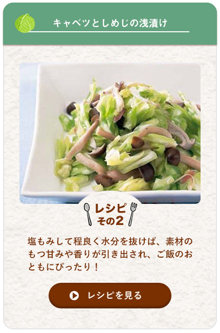 ビタミンCやUをたっぷりと摂れるので、キャベツの生食はおすすめ。千切りキャベツはカットした断面が多いのでアリルイソチオシアネートが発現しやすく、効果がより期待できる。この成分は揮発性なので刻みたてのほうがよい。