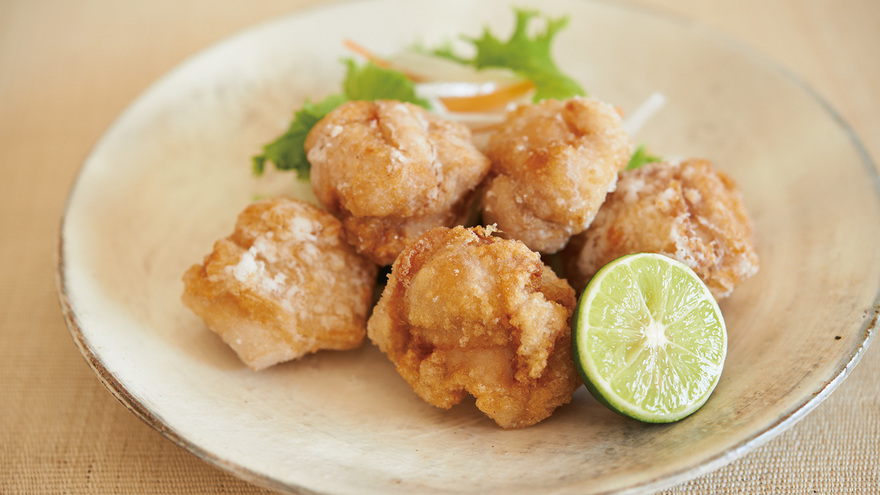 鶏肉のおいしさをじっくりと味わえる基本のから揚げ。ベタッとならないよう、小麦粉は揚げる直前に。