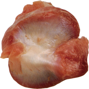 独特のややかたい歯ごたえがあり、牛や豚より、臭みやクセは少ない。焼き鳥や炒め物などに。