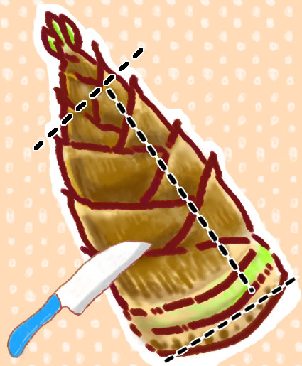 水で洗ってぬかを落とし、切り目から堅い皮をむく。先端を覆う柔らかい皮(姫皮)は食べられるので残す。