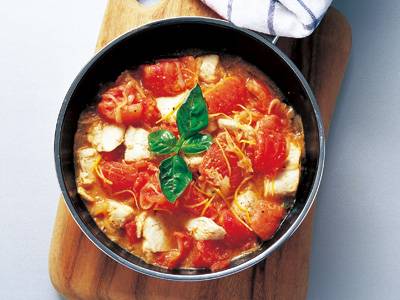 髙城 順子 340kcal 10分 じゃがいも、たまねぎ、豚ロース肉、トマトソース、粉チーズ、他