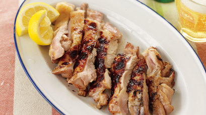 パリッと焼けたところにレモンをギュッで、さっぱり、どんどんいけちゃいます。分量のたれで鶏肉2~3枚はつけられます。