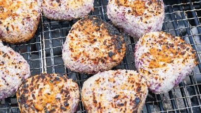 しょうゆの香ばしさをシンプルに味わいます。おにぎりを焼き網で焼いて、じっくりと焼き色をつけましょう。